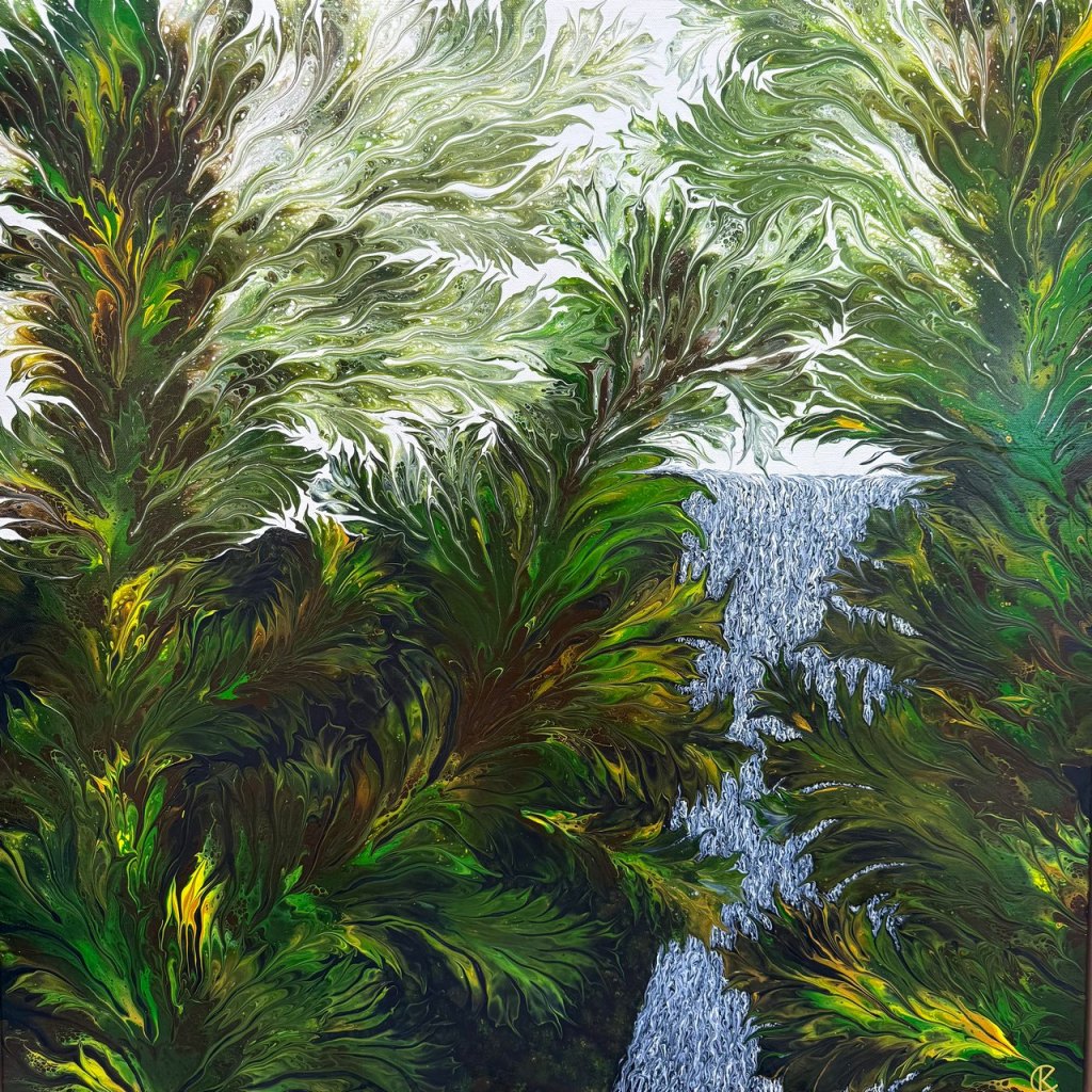 My paintings are known for their bold colours, fluid movement, and dynamic botanical forms that echo the cycles of nature and the flow of life’s energies.